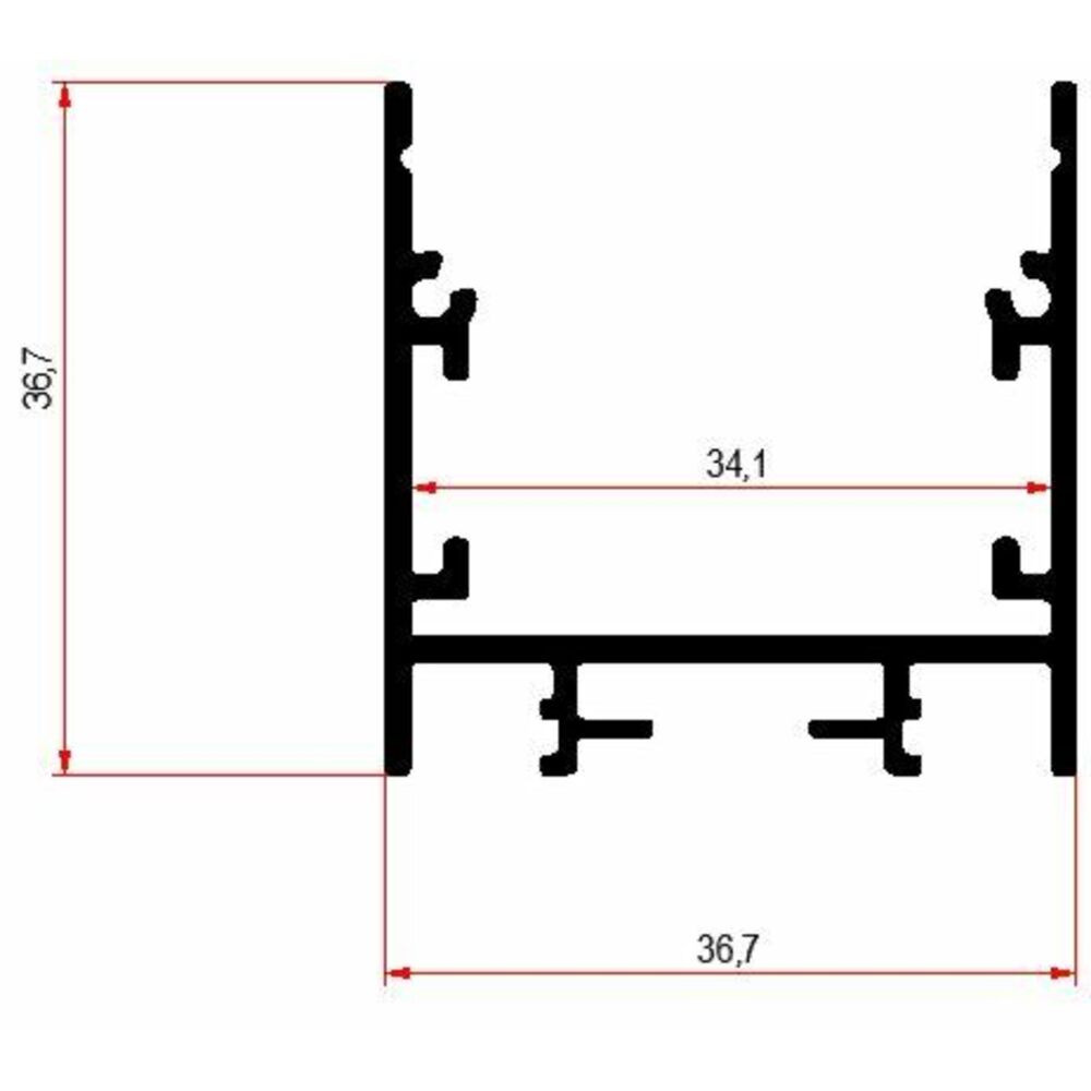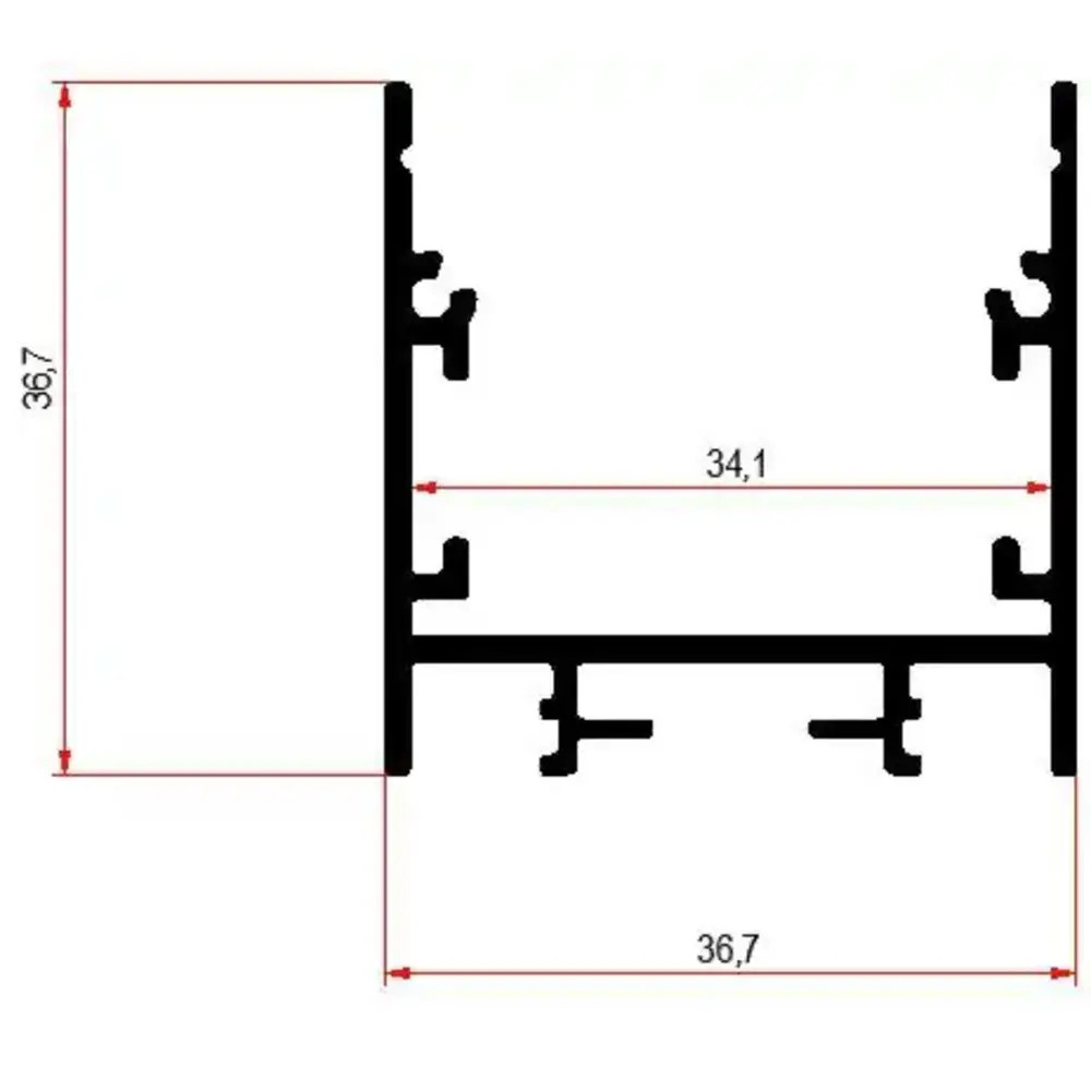 A 36,7 mm-es magasságával és 36,7 mm-es szélességével négyzet alakú, modern és alkalmazkodó tervezést kínál, amely különböző világítási alkalmazásokhoz alkalmas. A 6100 mm-es hossza lehetővé teszi a zökkenőmentes integrációt és testreszabást a specifikus világítási igények alapján. Ez a profil LED szalagokkal kompatibilis, akár 27,00 mm szélességig, ami rugalmasságot biztosít a világítási tervezésben. A 435 VL ideális a hangulatos világítás létrehozására, legyen az felületre szerelve vagy függesztett formában, így sokoldalú választás számos világítási forgatókönyvhöz.