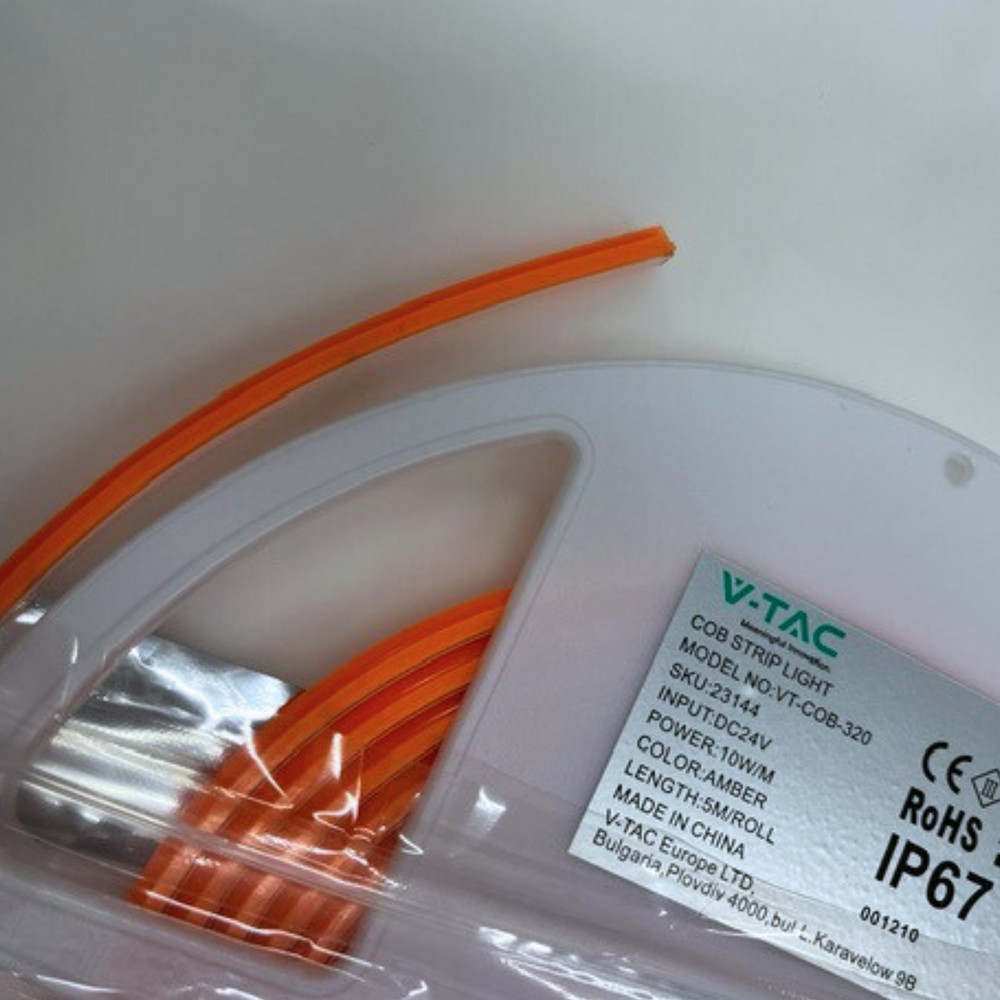 LED szalag , kültéri , 24 Volt DC , COB , 320 LED/m , DOTLESS , 10 W/m , borostyán , IP67, CSOMAGOLÁSSÉRÜLT