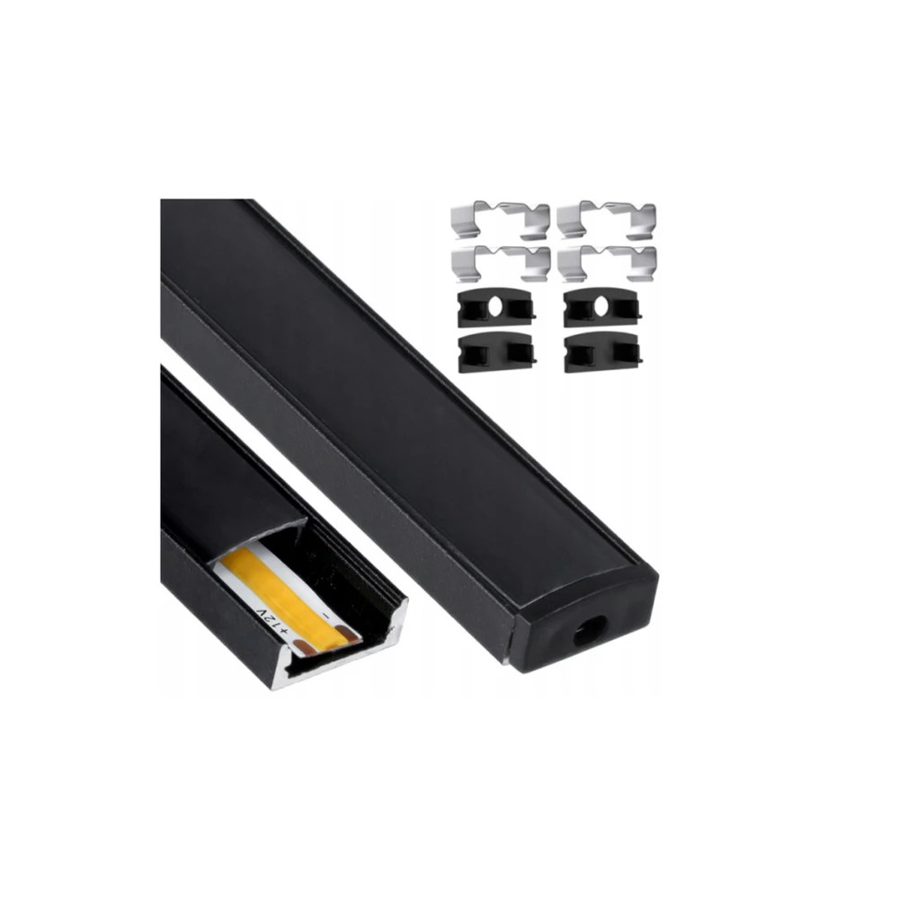 Berge Felületre Szerelhető Aluprofil Fekete Fedéllel 2 Méteres Szál Fekete Színben, Típus: Felületre Szerelhető Profil Anyaga: Fekete Eloxált Alumínium Árnyékolás: Fekete (Az Egyenletes Fényeloszlásért) Szín: Fekete Hossz: 2M Belső Szélesség: 12 Mm (Kompatibilis A Led Szalagokkal) Rögzítés: 4Db Tartókonzol Tartozik Hozzá, Ledmasterb2B, Típus: Felületre szerelhető profil