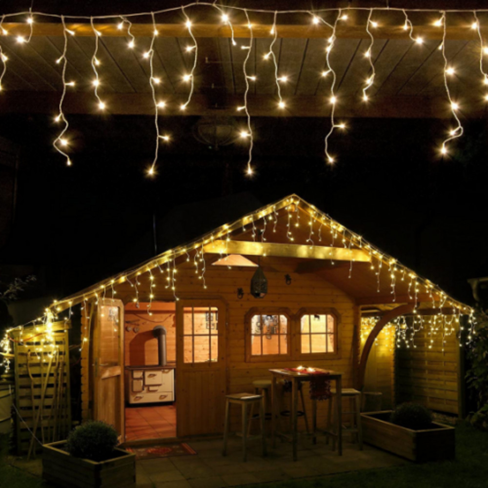 Led fényfüzér , beltéri/kültéri , 480 db LED , 12 m , meleg fehér , 8 programos , jégcsap , IP44 , időzíthető