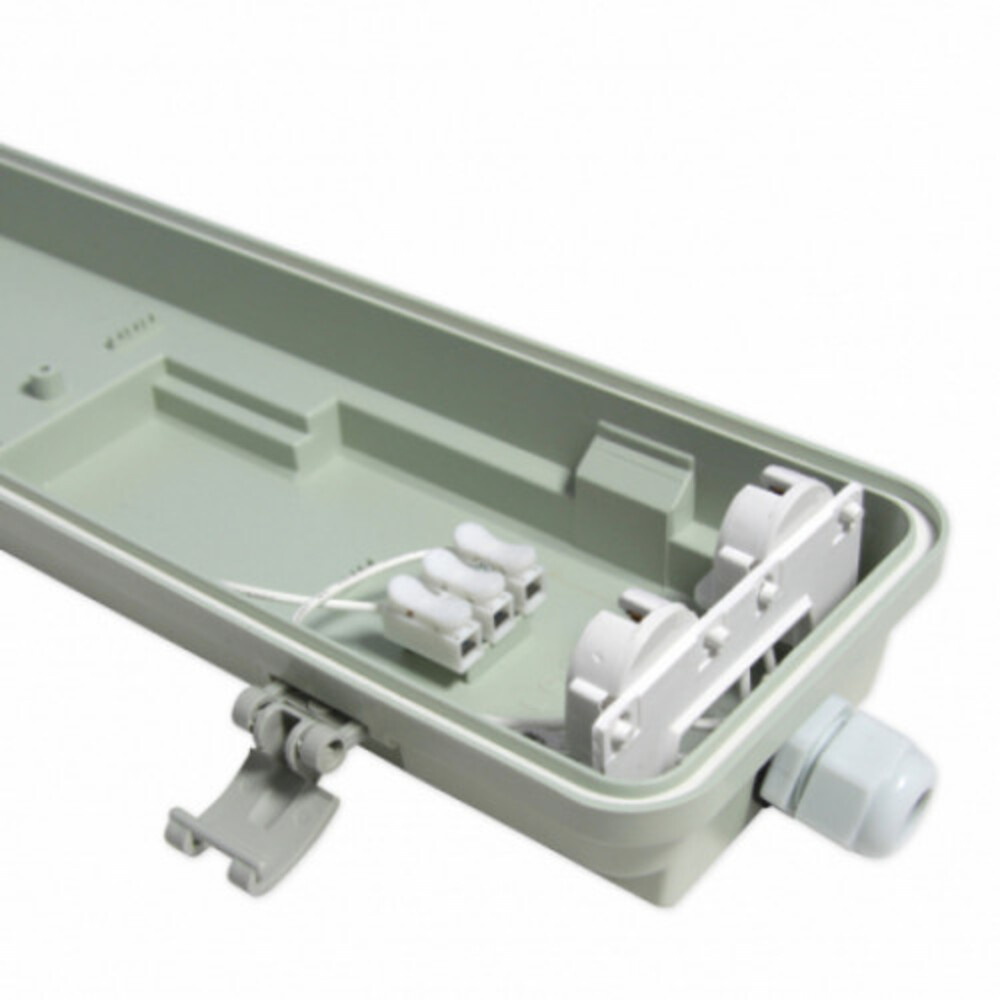 • 120 cm-es IP65-ös védettségű por- és páramentes armatúra. A lámpatest anyaga ABS, búrája polisztirol.
