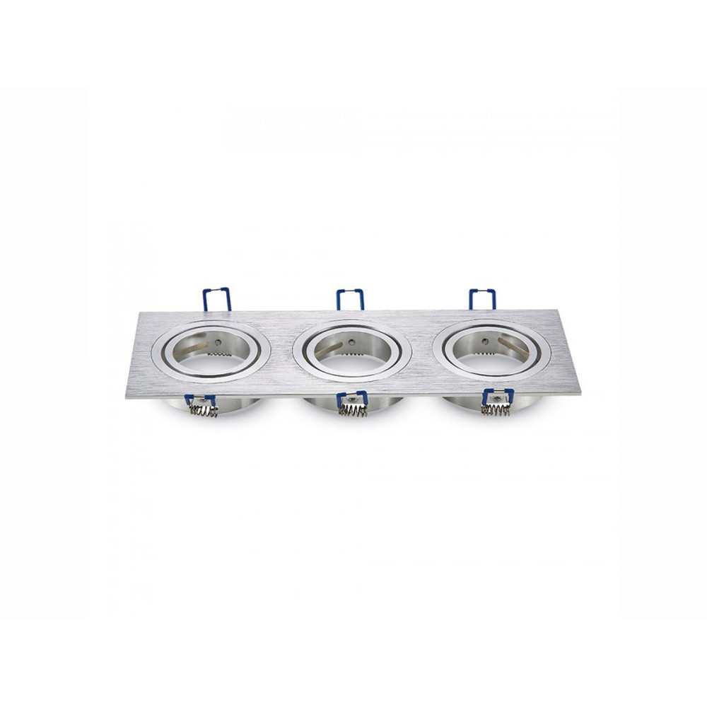 Beépíthető spot lámpatest , négyszögű , tripla keret , 3 x MR16 , 3 x GU10 , szálcsiszolt króm