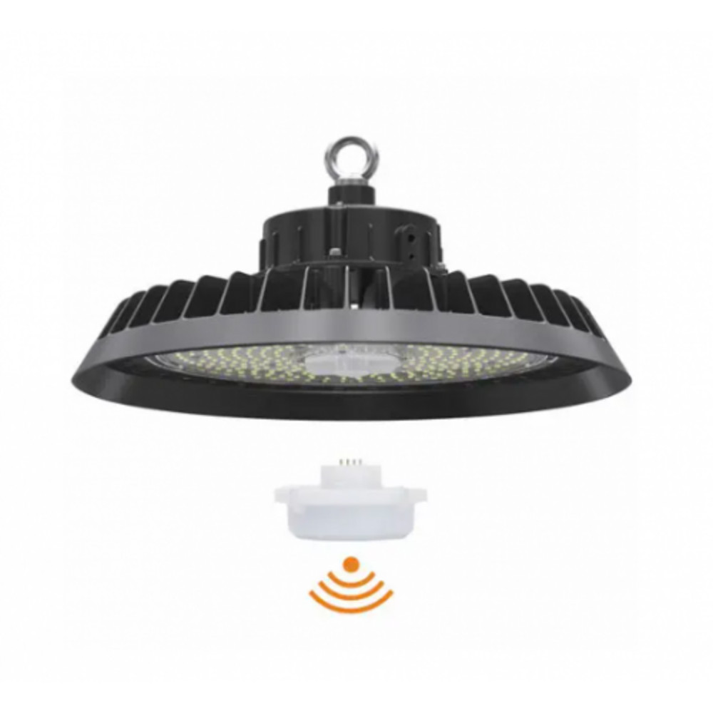 Csarnokvilágító LED lámpatest , UFO , 150 Watt , 150 lm/w , ipari világítás , dimmelhető , hideg fehér , 120° , mozgásérzékelő foglalattal , LEDISSIMO TECHNICAL