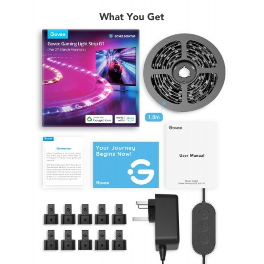 Digitális LED szalag szett , PC monitor követő funkcióval , RGB + IC (digitális) , 2m , GOVEE, Gaming G1