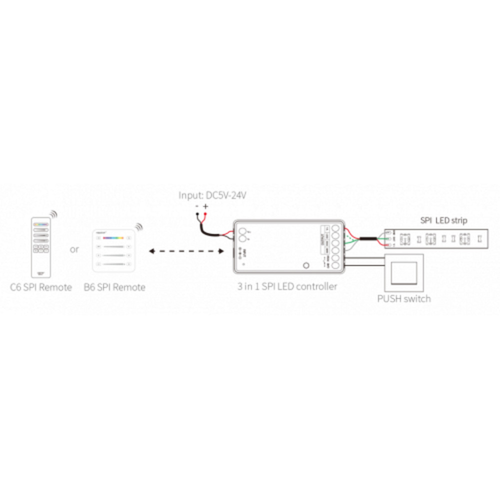 Digitális (SPI) LED szalag vezérlő (2.4GHz) futófényhez , 3in1 , 10A , monokróm/RGB /RGBW , Miboxer , SPIR3