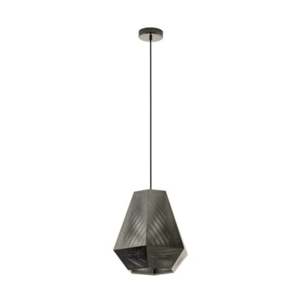 A CHIAVICA függőlámpa gyémánt alakú lámpabúrával rendelkezik, amely perforált lemezborításból készült fekete nikkel bevonattal. A perforált lámpabúra érdekes fény- és árnyékjátékot hoz létre, amint a fény bekapcsol. A lámpabúrák fekete nikkel fém baldachinról lógnak le fekete textil kábelen keresztül. Modern designjával a függőlámpa stílusos világítást biztosít az étkezőasztal felett az étkezőben vagy a nappaliban. A villanykörte nem tartozék. A terméknek E27 foglalata van és E27-es villanykörtét igényel.
