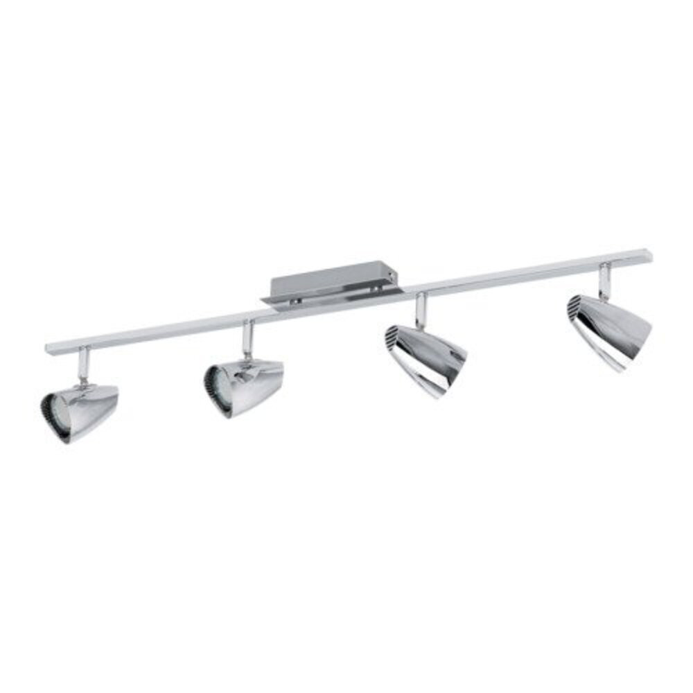 Ez a négy lángoló folt a CORBERA sorozatból krómozott acélból és műanyagból készült, és négy GU10-LED-lámpával van felszerelve, amelyek meleg fehér fényt biztosítanak.