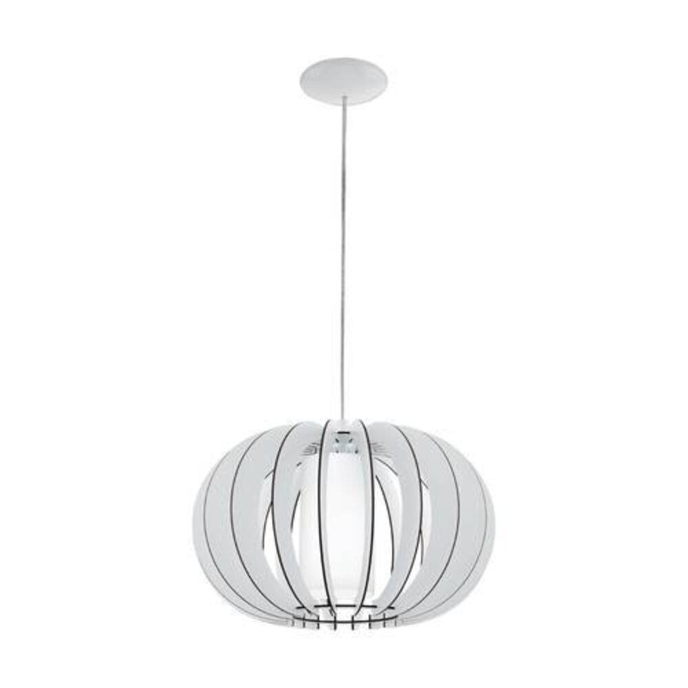 A STELLATO 2 függőlámpa kerek lámpaernyője fehér faelemekből készült. A belső fehér üveg henger kiegészíti a lámpa modern megjelenését és vonzó fényt biztosít. A függőlámpa minden belső design stílussal harmonizál, otthonos világítást biztosítva a nappaliban vagy az étkezőasztal felett. A villanykörte nincs tartozékban. A termék E27 foglalattal rendelkezik és E27 izzót igényel.
