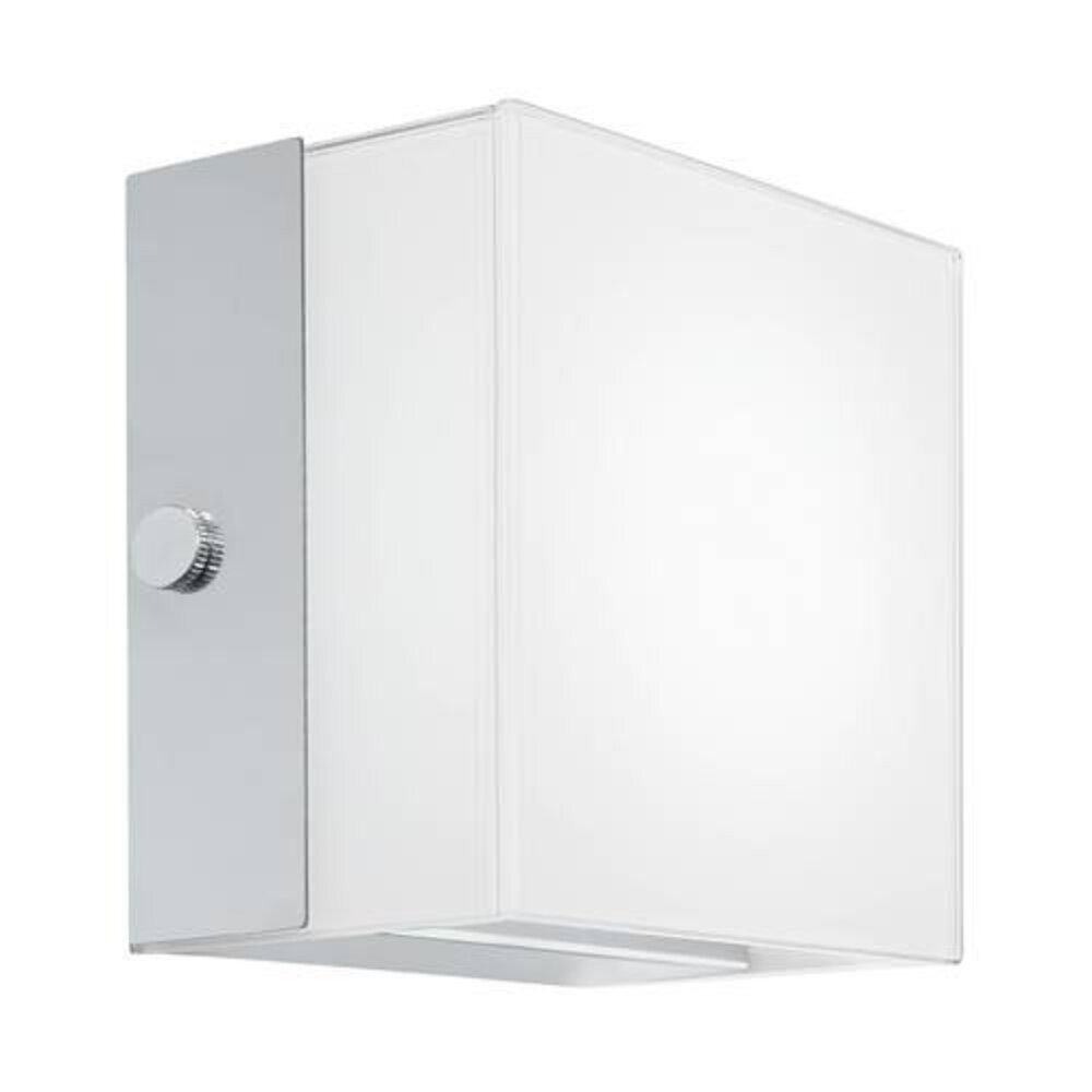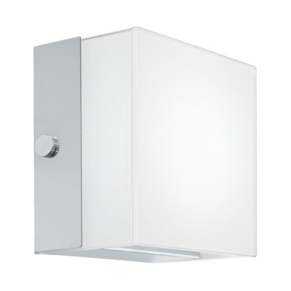 Ez a falvilágító az ALEA 2 sorozatból krómozott acélból és fehérre festett üvegből készült. Cserélhető LED-lámpával van felszerelve, mely meleg fehér fényt ad.