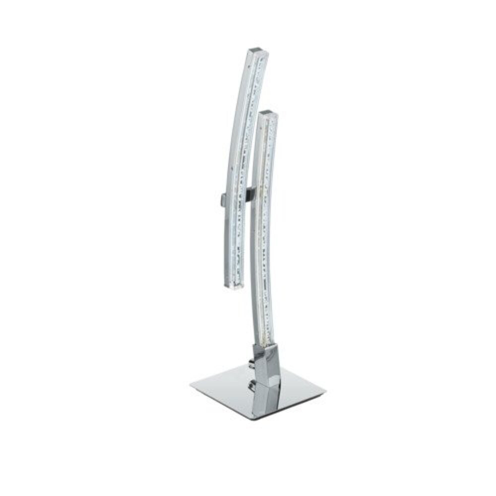 Ez a PERTINI sorozatból származó asztali lámpa krómozott acél, alumínium és átlátszó műanyag kombinációjából készült. A lámpa zsinórkapcsolóval működik, védőszigeteléssel és két LED-lámpával van ellátva, amelyek meleg fehér fényt biztosítanak. A PERTINI sorozat eleganciáját a keskeny fényelemek adják, és teljes lámpacsaládot kínál a mennyezeti lámpáktól kezdve az asztali lámpákig. A lámpához tartozik a fényforrás, amely nem cserélhető. Energikus megjelenésével és hatékony világításával ideális választás bármely belső tér számára. A termék 5 év garanciával rendelkezik.