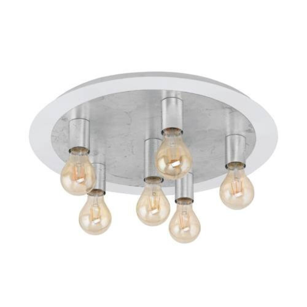 Ez a PASSANO sorozatú fal- vagy mennyezeti lámpatest fehér és ezüstszínű acélból készült. Hat E27-es fényforrásra van szüksége, hogy ragyogjon.