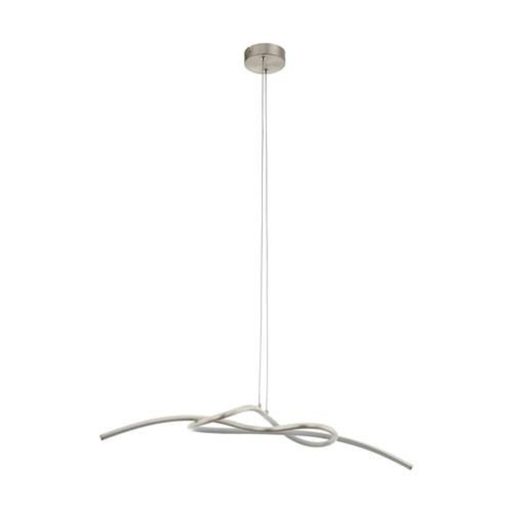 Ez a NOVAFELTRIA sorozatú függőlámpa szatén nikkellel bevont alumíniumból és fehér műanyagból készült. Az LED világítótestek meleg fehér fényt biztosítanak.