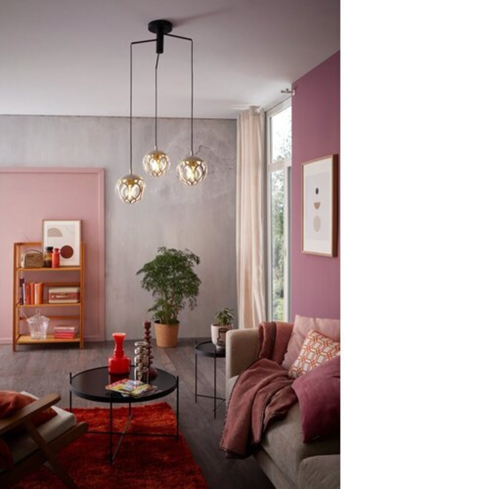 A MIRTAZZA függesztett lámpa fekete fém kivitelben készült, három pezsgőszínű gömblámpa árnyékkal. Az organikus formájú kivágások izgalmas fény- és árnyékjátékot teremtenek, amint a lámpa bekapcsolódik. A szokatlan fali szerelési kialakításnak köszönhetően a lámpa mobilra emlékeztet, és szemet gyönyörködtető világítást biztosít bármely térben, legyen az a konyha, a nappali vagy az étkezőasztal felett. A képen látható filament izzók nem tartoznak a termékhez. A termék E27 foglalattal rendelkezik és E27-es izzókat igényel.