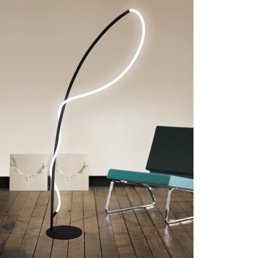 Az EGIDONELLA LED állólámpa ívelt, fehér műanyag profilú LED csövet és finoman ívelt fekete fém alapot tartalmaz. A LED cső kellemes, meleg fehér fényt bocsát ki és 360°-os megvilágítást biztosít a környező terület számára. Az in-line padlókapcsoló segítségével könnyen be- és kikapcsolható. Ez az állólámpa tökéletes befejező érintés a modern és minimalista belső terekhez, figyelemfelkeltő eleme a térnek, legyen az a hálószoba, a nappali vagy az étkező.