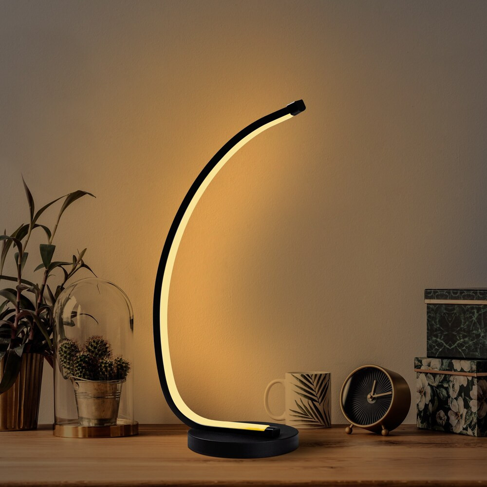 Stílusos fekete asztali lámpa, fém ház, 18 x 43 x 13 cm | 12W-os LED-aljzat, 3000K meleg fény | 80 CRI, IP20 | Tökéletes otthoni irodákba és lakóterekbe, be/ki kapcsoló, 200 cm-es kábelhossz