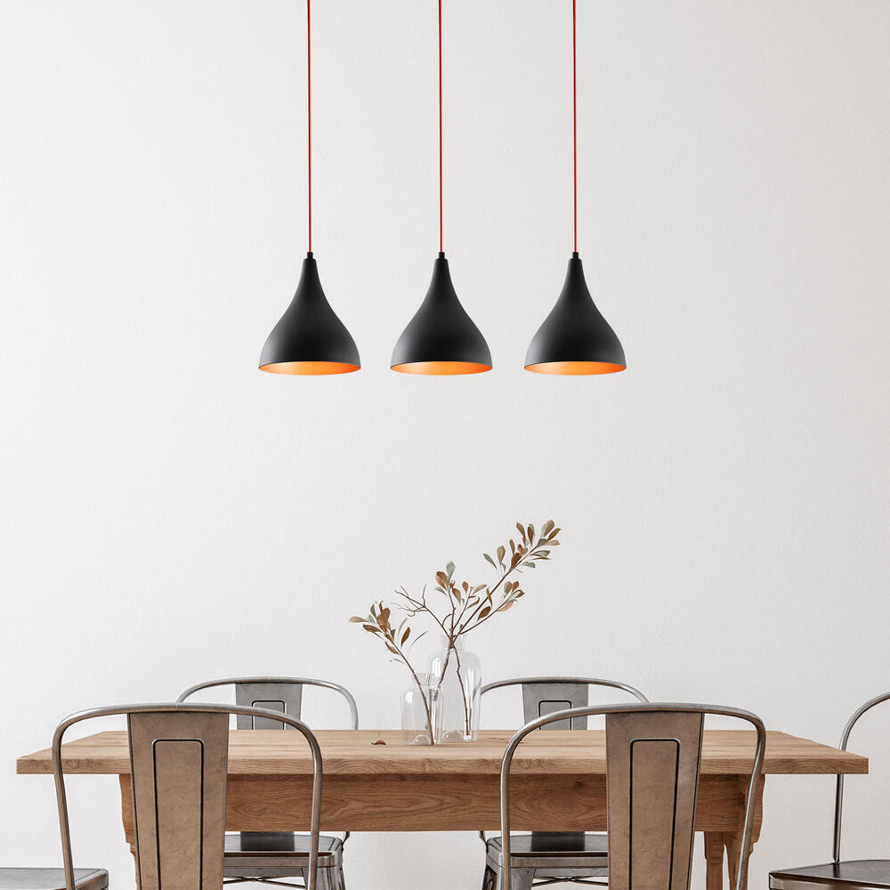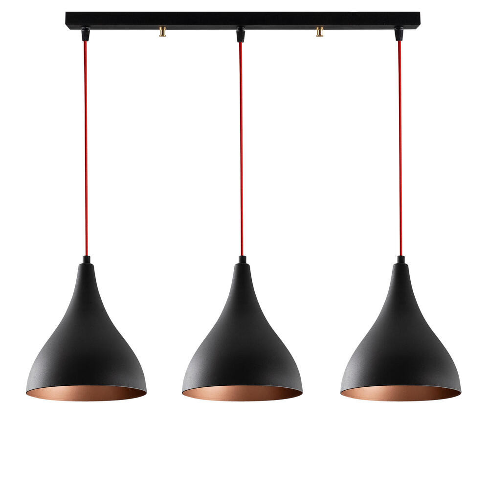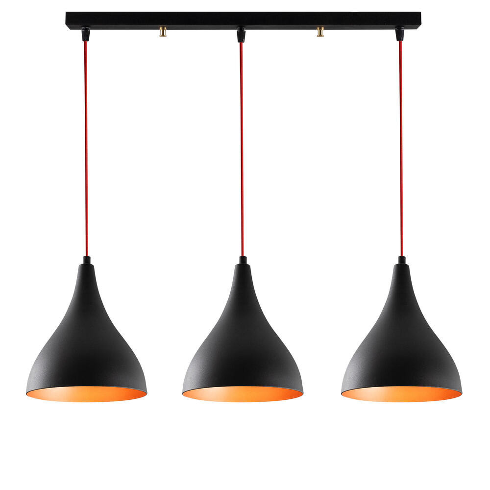 Modern ipari csillár, fekete-piros, 72 x 22 cm, magasság 118 cm | Fém ház, 3 x E27 aljzat, IP20 | Tökéletes skandináv és újszerű dekorációhoz, stílusos világítás otthoni és irodai terekhez