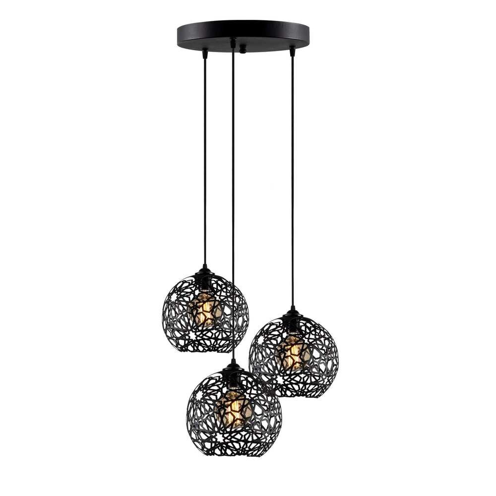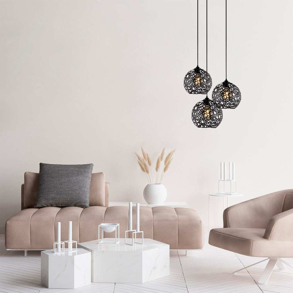 Modern fekete csillár, 65 cm átmérő, 117 cm magasság | Fém ház, állítható magasságú, 3 x E27 Max 40W | Stílusos világítás otthonra és irodába, elegáns dizájn, IP20 besorolás, tökéletes kortárs terekbe