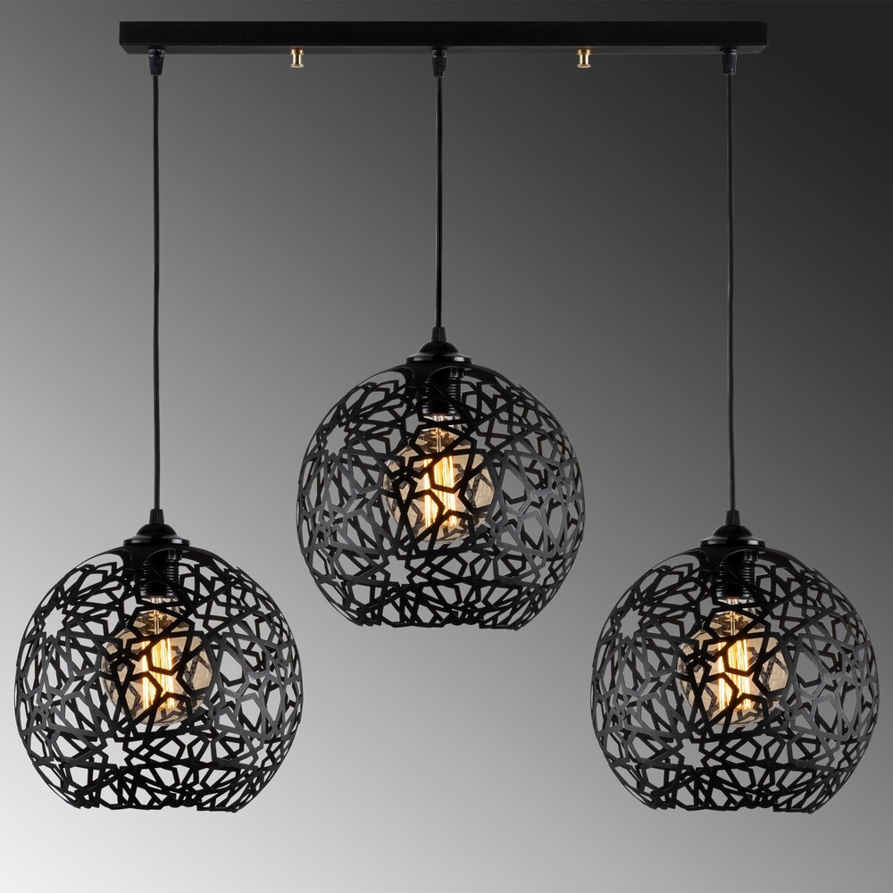 Modern fekete csillár, fém test, 100 x 25 cm, magasság 115 cm, állítható, 3 x E27 Max 40W, IP20 | Elegáns dizájn otthonra és irodára, tökéletes kortárs terekbe, elegáns világítási megoldás