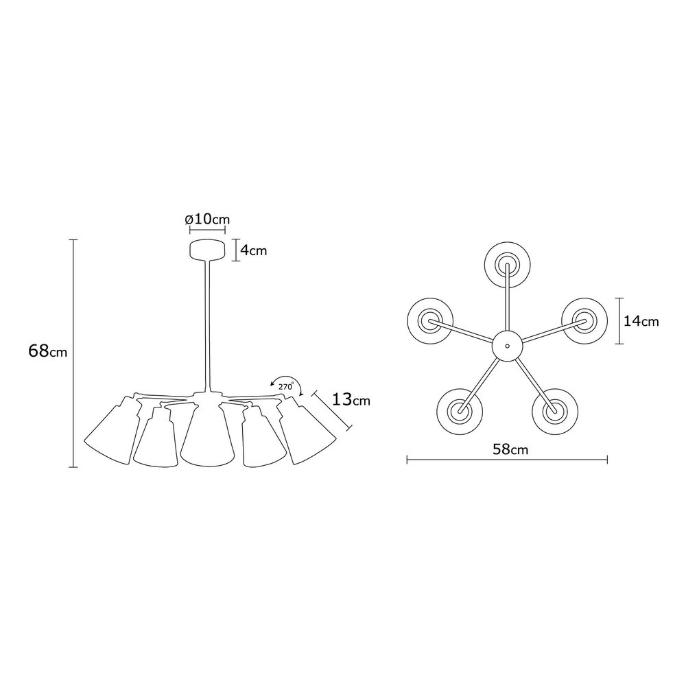 Modern csillár fém testtel és fa alappal, 58 cm átmérő, 68 cm magasság | 5 x E27 aljzat (max. 40 W) | Stílusos világítás baba-, gyerek- és fiatal terek számára | Elegáns design lakberendezéshez
