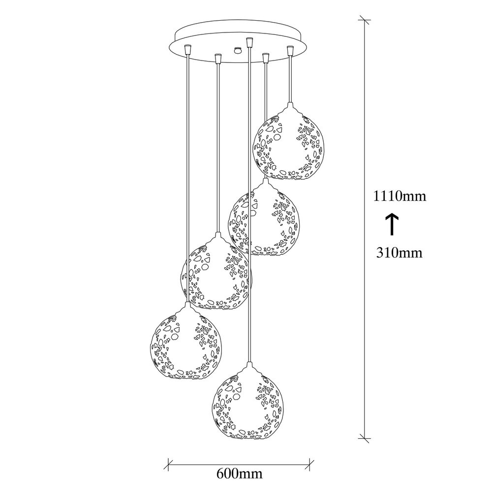 Modern fekete csillár, 60 cm átmérő, állítható magasság 111 cm | Fém ház, 5 x E27 Max 40W | Elegáns dizájn otthoni és irodai használatra, IP20-as besorolású, stílusos lámpatest bármilyen helyre