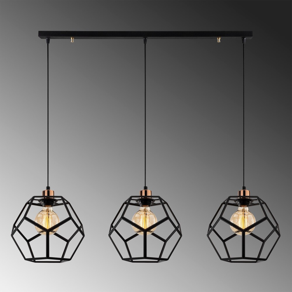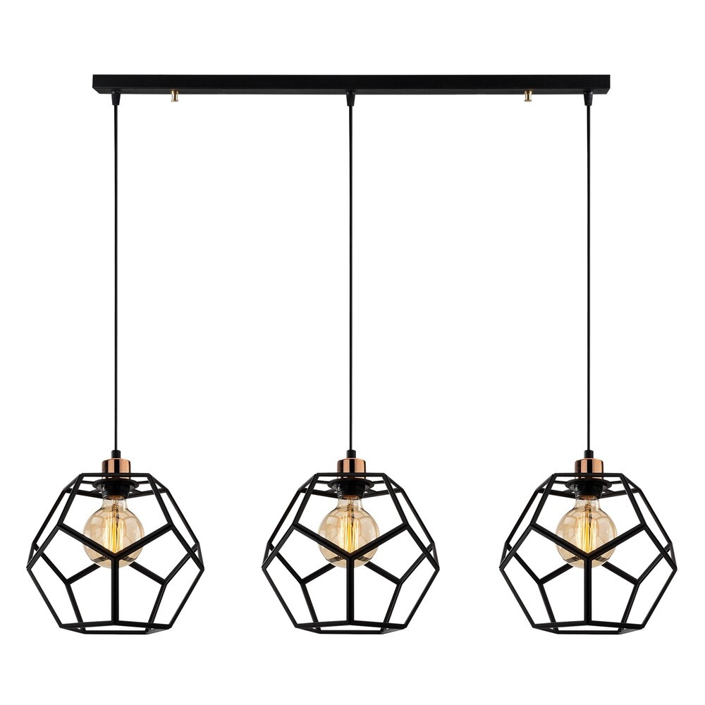 Ipari csillár, fekete és bronz, 96 x 26 cm | Állítható magasság 120 cm, 3 x E27 Max 40W | Stílusos fém test, tökéletes modern otthoni és irodai dekorációhoz | IP20 besorolású, egyedi kialakítás