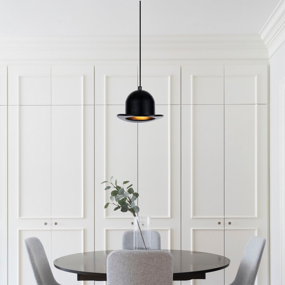 Modern fekete csillár, 19 cm átmérő, 110 cm magasság | Állítható magasságú, fém ház, E27 aljzat (max. 40 W) | Stílusos ipari és skandináv design otthoni és irodai világításhoz