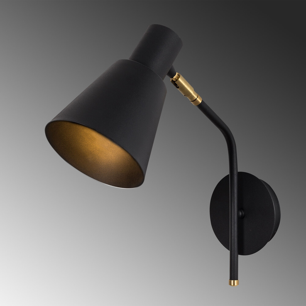 Stílusos fali lámpa, fekete-arany, 14 x 36 x 40 cm | Fém ház, E27 aljzat (max. 40 W), IP20 | Tökéletes modern, ipari, skandináv és szállodai dekorációhoz, elegáns világítási megoldásokhoz