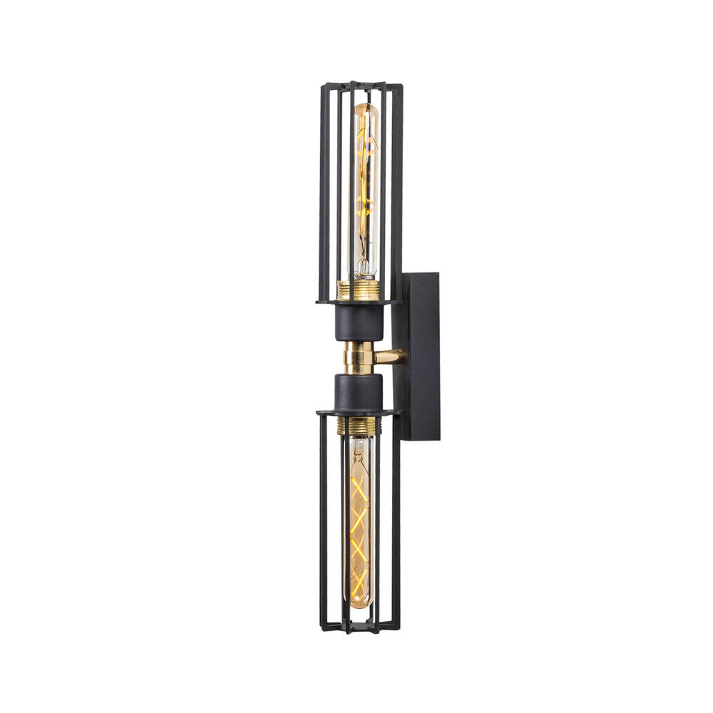 Elegáns fali lámpa, fekete és arany, 50 cm magasság | Vastest, 8 x 15 cm sapka, 2 x E27 Max 40W | Stílusos világítás modern szállodákba és otthonokba, IP20 besorolású, bármilyen szobadekorációhoz tökéletes