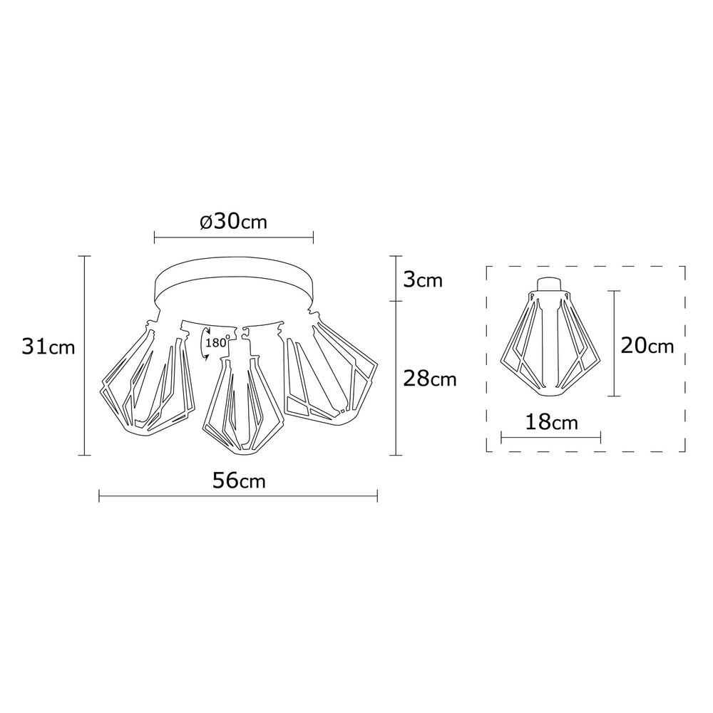 Elegáns fekete-arany csillár, 56 cm átmérő, 31 cm magasság | Fém ház, 3 x E27 Max 40W | Modern ipari formatervezés, tökéletes nappaliba és étkezőbe, stílusos és funkcionális világítási megoldás