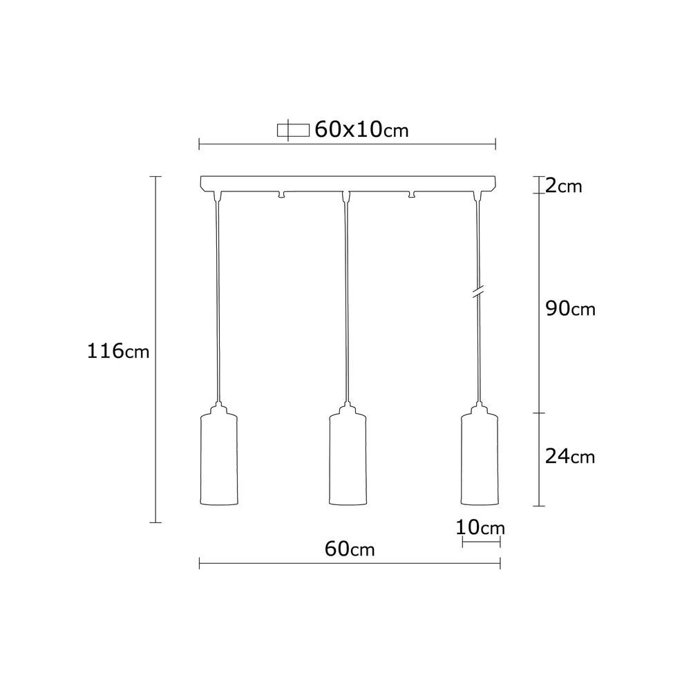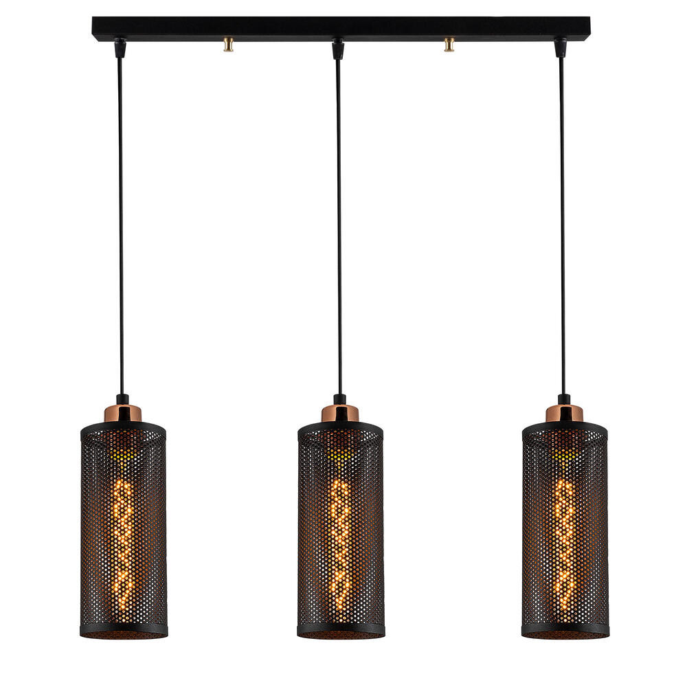 Stílusos ipari csillár, fekete és bronz, 60 x 10 cm | Állítható magasság 116 cm, 3 x E27 Max 40W | Tökéletes a modern és skandináv dekorációhoz, IP20 besorolású, elegáns fém karosszéria kialakítás