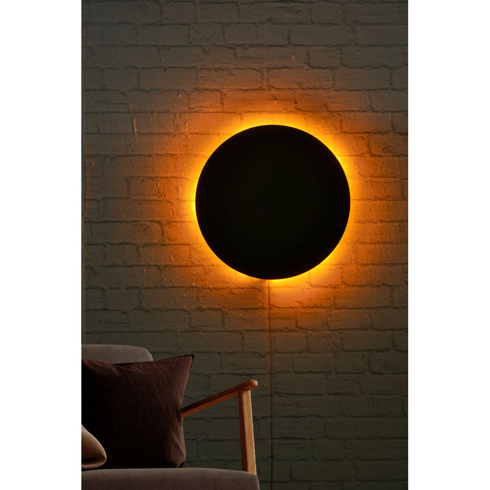 Elegáns sárga dekoratív LED világítás, 45 cm átmérő, 350 lumen, 60 LED/m, fekete MDF alap, 50 000 órás élettartam, tökéletes otthoni dekorációhoz és hangulathoz