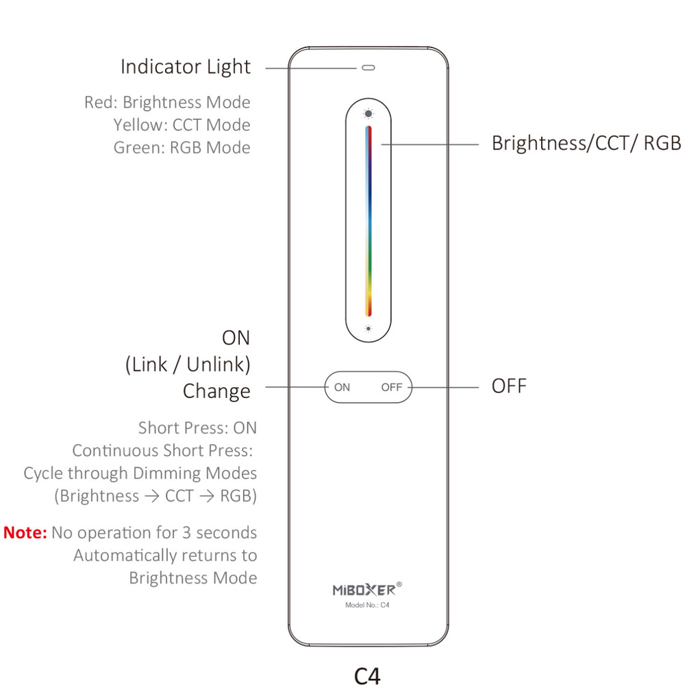 Elemes távirányító , mágneses , 2.4GHz , RGB+CCT , dimmelhető , fekete , Miboxer (Mi-Light) , C4