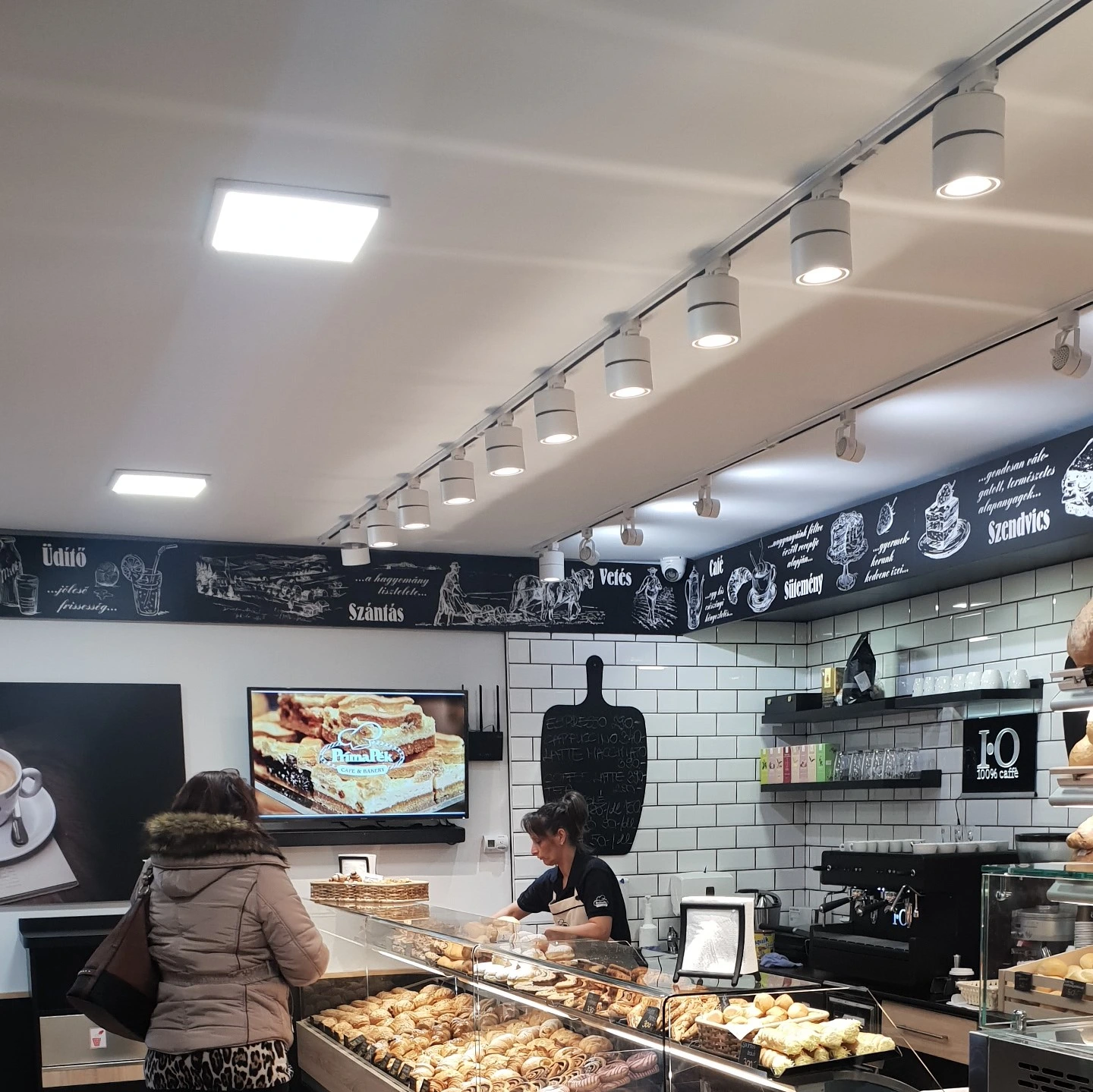 A gyöngyösi Belvárosi Príma Pék nemcsak a finom illatú péksüteményeivel, hanem a modern és hangulatos világításával is kitűnik. A világítási megoldásokat a LEDvonal.hu termékeivel alakították ki, hogy a pékség minden pontja a vásárlói tértől a pult mögötti frízig, tökéletes megvilágítást kapjon.
