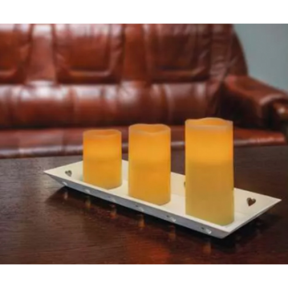 Led dekoráció , beltéri , 3 db viasz gyertya , vintage , időzíthető , elemes , távirányítóval