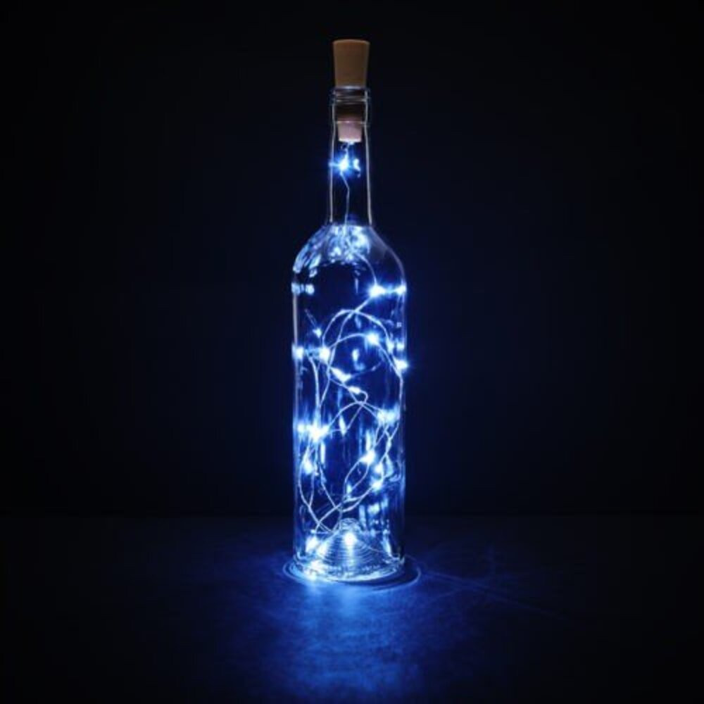 Led fényfüzér , beltéri , 20 db LED , hideg fehér , borosüveg dugó , elemes