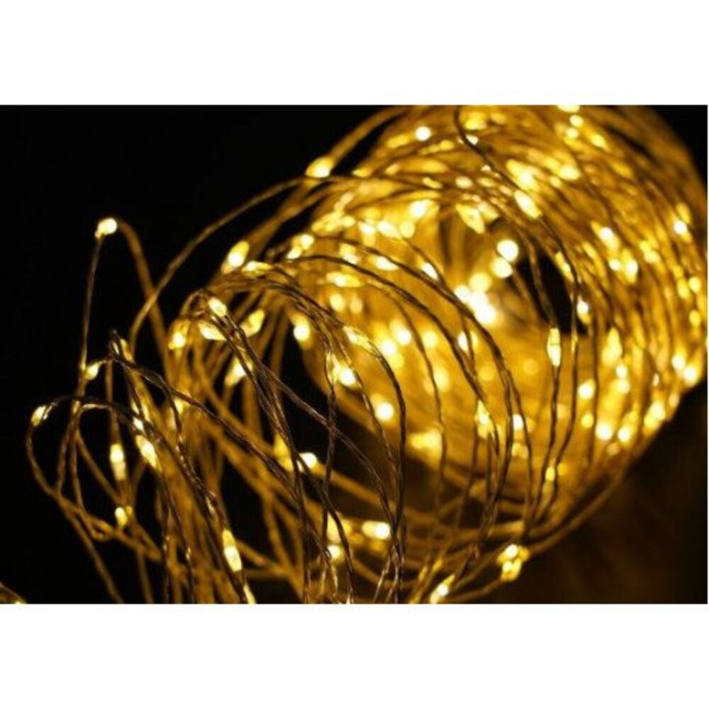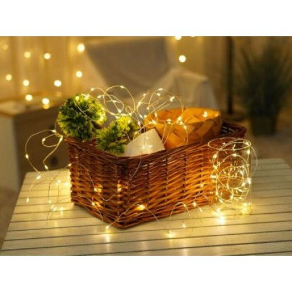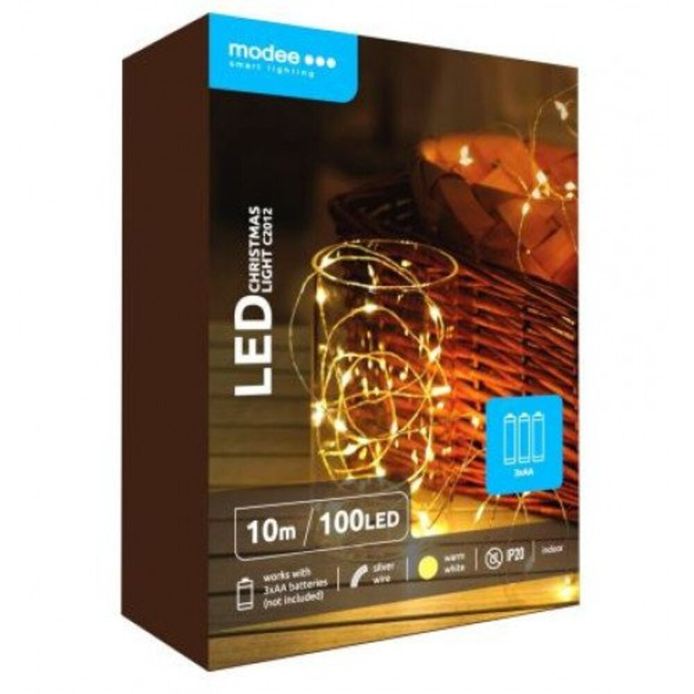 Led fényfüzér , beltéri , 10 m , meleg fehér , rézszálas , időzíthető , elemes , Modee