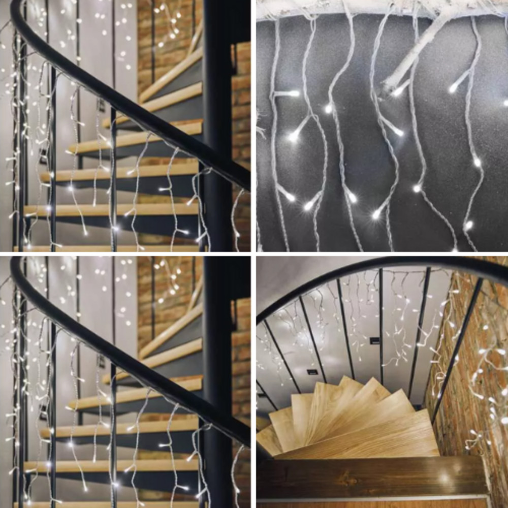 Led fényfüzér , beltéri/kültéri , 300 db LED , 5 m , hideg fehér , 8 programos , jégcsap , időzíthető , távirányító , IP44