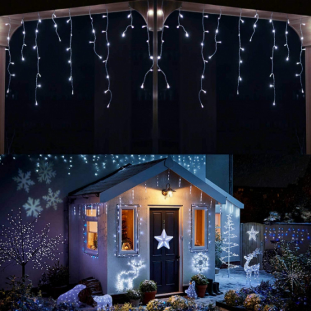 Led fényfüzér , beltéri/kültéri , 480 db LED , 12 m , hideg fehér , 8 programos , jégcsap , IP44 , időzíthető