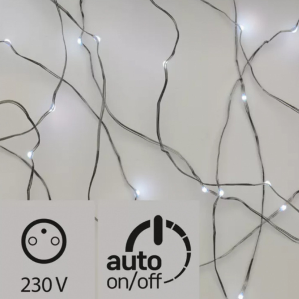 Led fényfüzér , beltéri/kültéri , nano LED , 10 m , hideg fehér , ezüstszálas , időzíthető , IP44