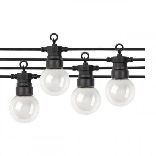 Led fényfüzér , kültéri , E27 , 20 db x 0.5W , 13 m , hideg fehér , fekete , IP65