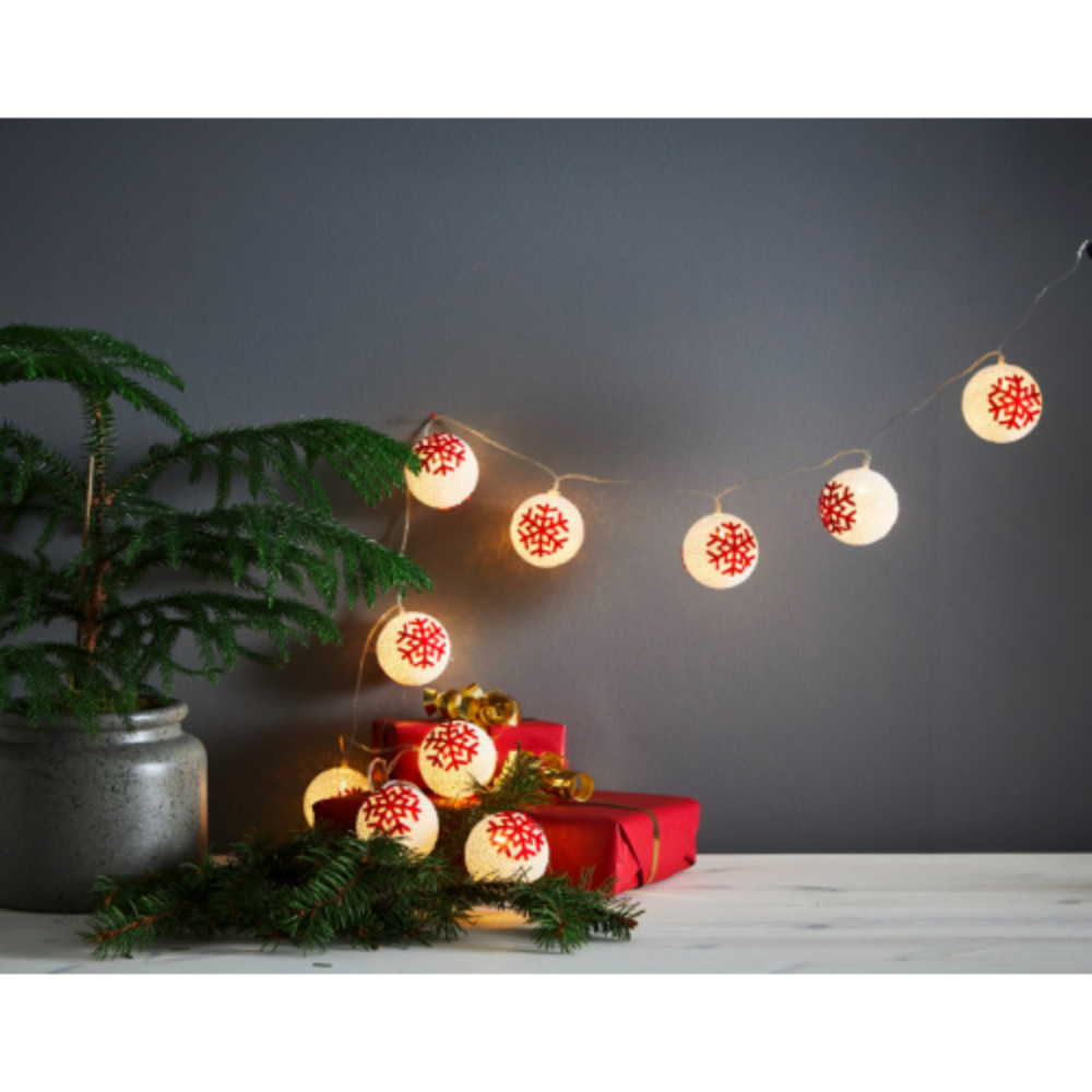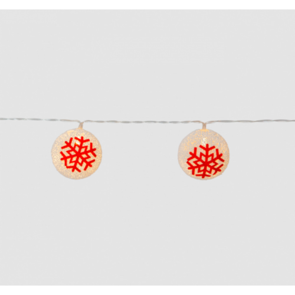Led fényfüzér , piros hópihés gömb , beltéri , 10LED , 1.3 m , meleg fehér , fehér , EGLO