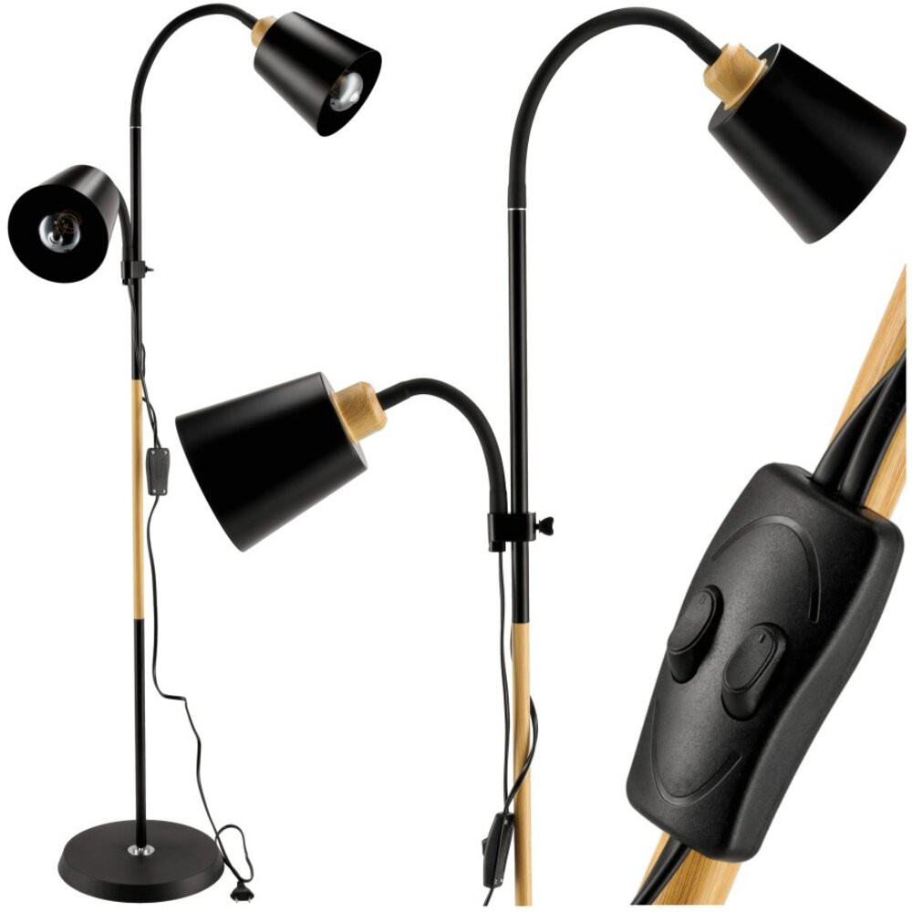 LED lámpa ,  állólámpa , állítható magasság , E27-es foglalattal , 2xE27 , fekete , fa , Berge London