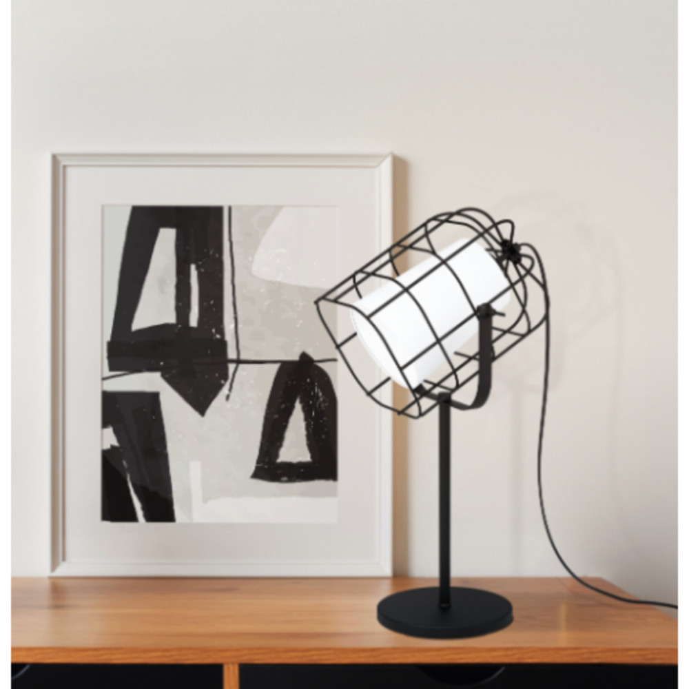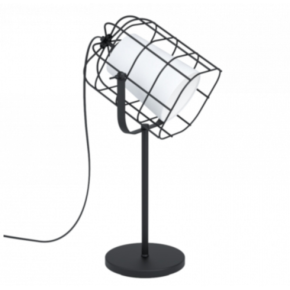 • Fekete drótkosárral, fehér szöveg lámpabúrával és fekete fém tartóval rendelkezik.
