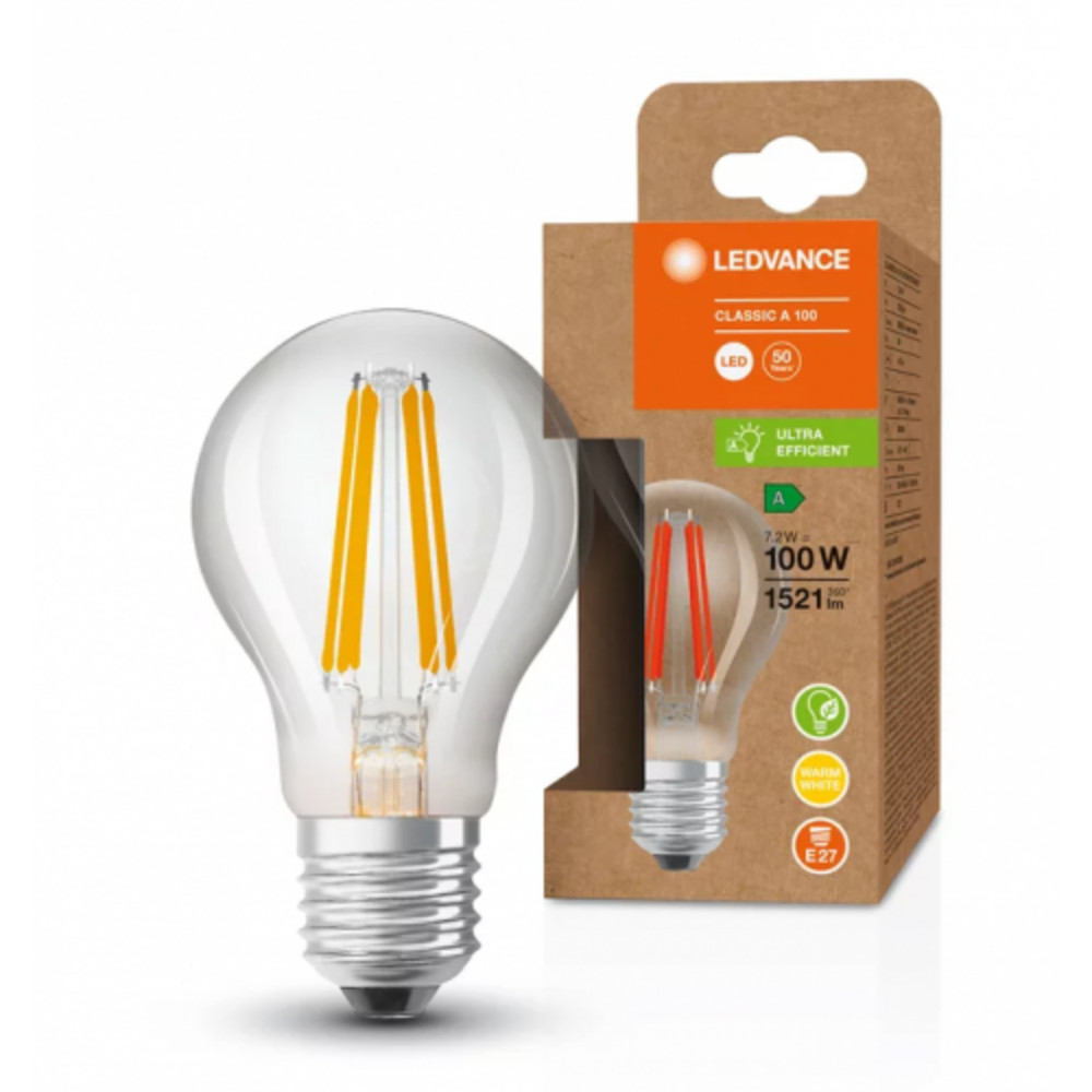 LED lámpa , égő , izzószálas hatás , filament , E27 , 7.2W , 211 lm/w , A besorolás , meleg fehér , 5 év garancia , LEDVANCE (OSRAM)