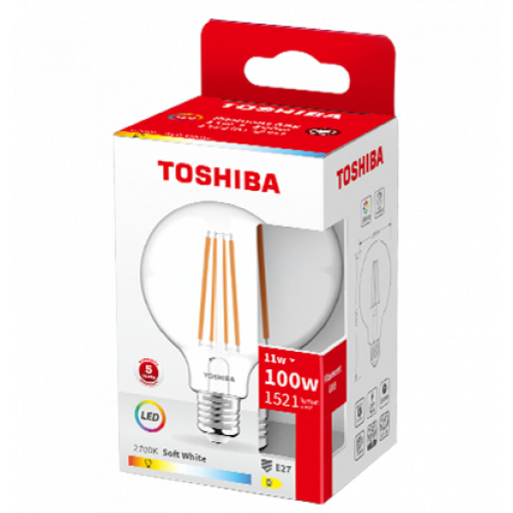 LED lámpa , égő , izzószálás hatás , filament , E27 foglalat , 11 Watt , meleg fehér , TOSHIBA , 5 év garancia