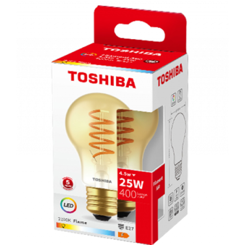LED lámpa , égő , izzószálás hatás , filament , E27 foglalat , 4.5 Watt , meleg fehér , TOSHIBA , 5 év garancia