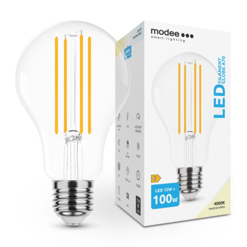 LED lámpa , égő , izzószálas hatás , filament , E27 foglalat , A70 , 12 Watt , természetes fehér , Modee