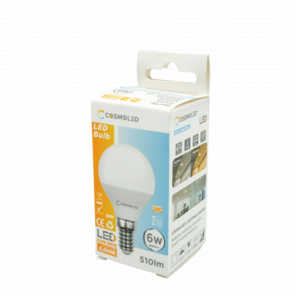LED lámpa , égő , kisgömb , E14 foglalat , 6W , természetes fehér , COSMOLED