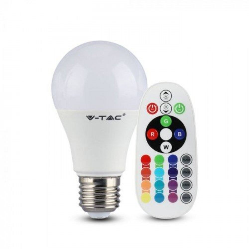 LED lámpa , égő , körte , E27 , 9W , dimmelhető , RGBW , W=természetes fehér , távirányítóval
