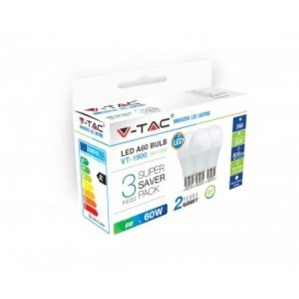 LED lámpa , égő , körte , E27 foglalat , 10.5 Watt , hideg fehér , 3 darabos csomag